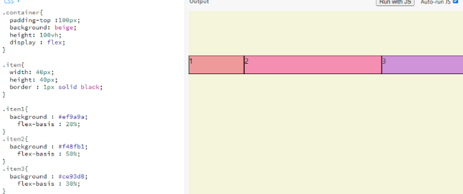 - flex-basis : item들이 어느정도의 공간을 차지할지 세부적으로 조절해준다.