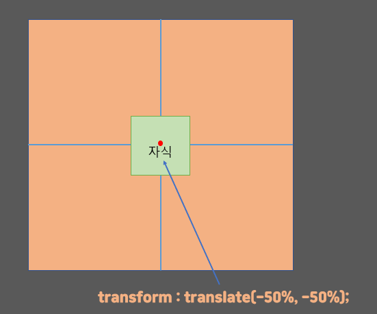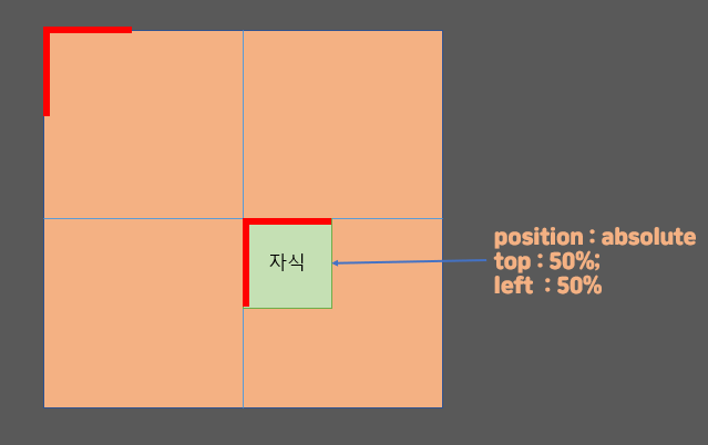 left : 50% : 좌측 면을 기준으로 부모 컨테이너의 50만큼 이동