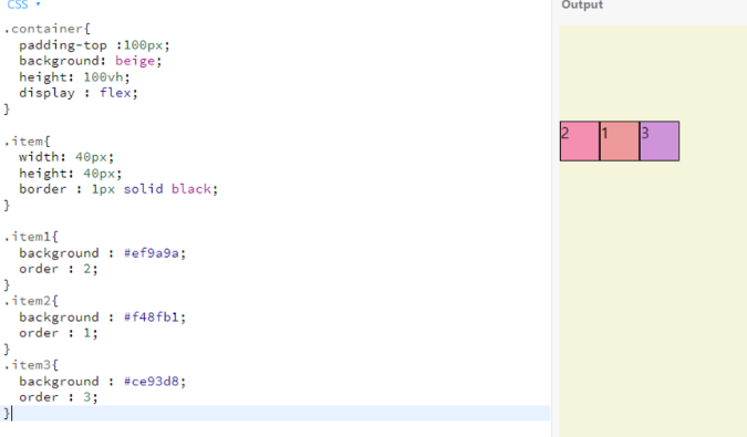 item1 ,2 ,3에 각각 order 가 지정되어 있습니다.