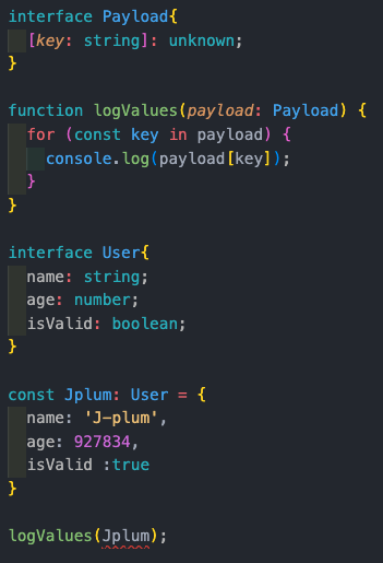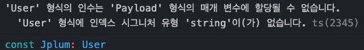 Payload는 인덱스 가능한 타입의 구조이지만 User는 그렇지 않습니다.